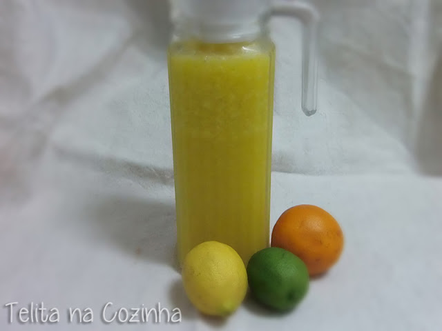 Adicionar os citrinos cortados em quartos, sem parte branca e sem caroços e triturar 2 min/ vel 9.
