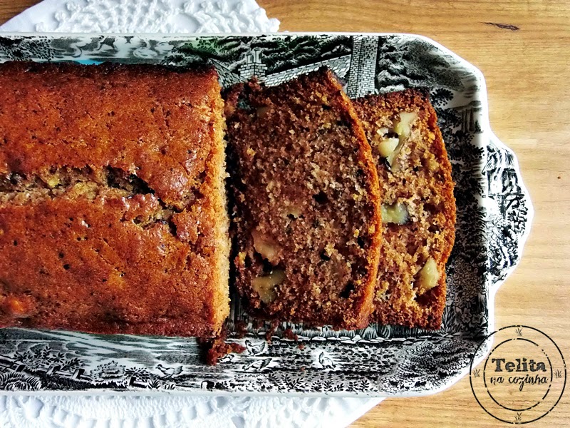 O bolo de hoje é um bolo da época e encontrei a receita no livro Viajar com a Bimby, no capítulo das receitas do Reino Unido. Este bolo tem uma textura de esponja macia e promete impressionar os convidados para o chá. Escolhi esta receita por ser da época, com abóbora e maçã.