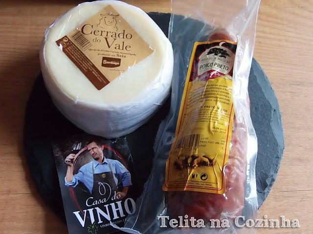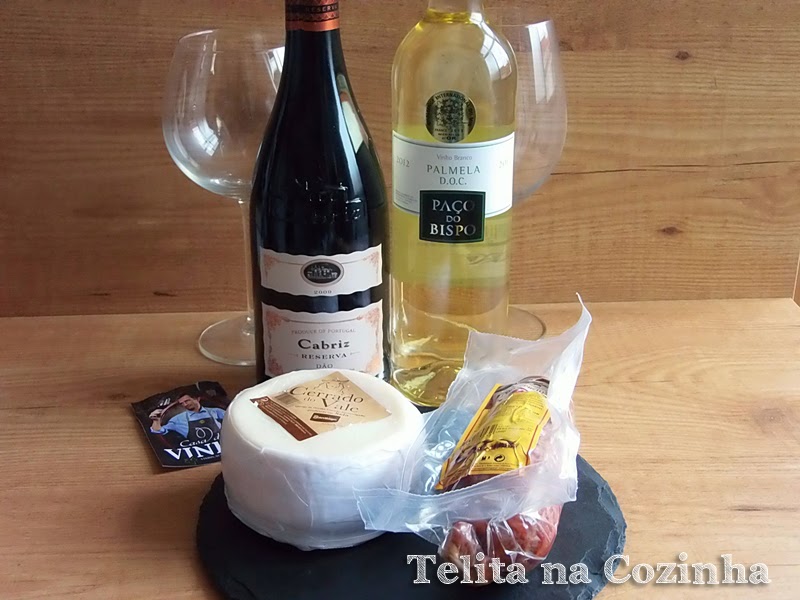 Tive o privilégio de receber em casa um cabaz para degustação com um dos meus tintos de eleição (Cabriz Reserva, do Dão), um branco da minha região preferida de brancos (Palmela D.O.C.), um queijo de cabra e um paio de porco preto:
