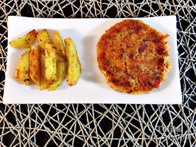 Depois de ter visto o Fish & Chips da Raquel, fiquei com vontade de experimentar. Para isso, descongelei filetes de pescada mas depois apeteceu-me hambúrgueres de peixe e acabei por adaptar a receita de hambúrgueres de salmão da Marisa. Acabei por fazer hambúrgueres de peixe com batata frita de forno. Ficou delicioso!