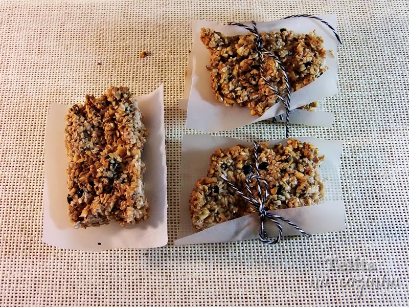Fiz mais barrinhas de cereais para poder ter um snack para meio da manhã (ou meio da tarde). As primeiras barrinhas de cereais caseiras que fiz foram barras de cereais com maçã e canela. Desta vez, quis variar os sabores e dar-lhes um toque selvagem. Por isso, usei mirtilos selvagens inteiros desidratados.