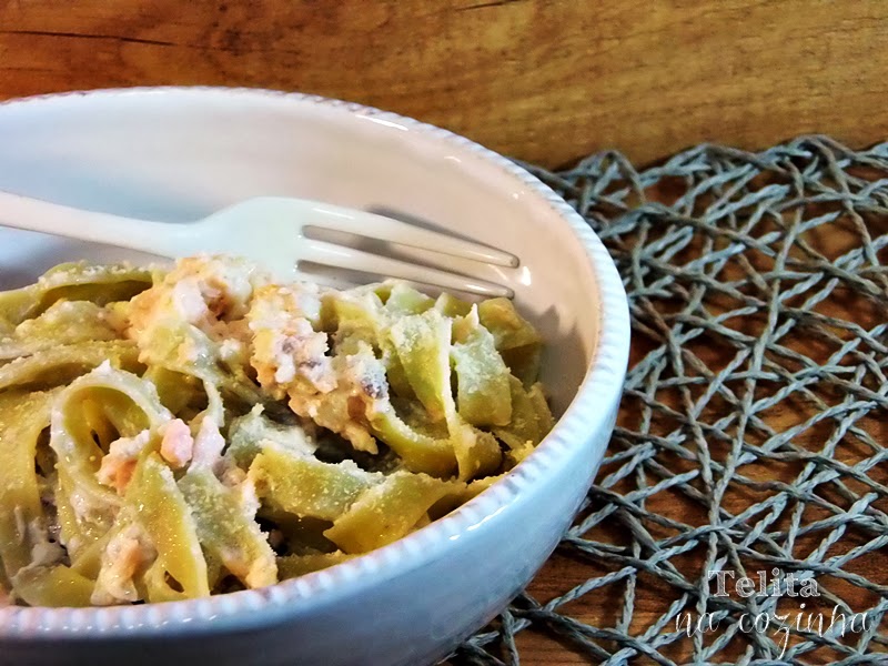 Normalmente, faço patê de atum mas, porque esta é uma noite especial e porque não gosto de marisco, aventurei-me no patê de salmão.