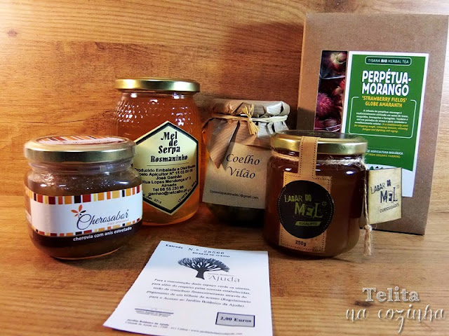 Fiquei absolutamente rendida ao doce de cherovia com anis do , ao Coelho Vilão dos e ao mel de rosmaninho do Mel do Ganhão. Ainda trouxe tomilho-limão das , um chá das e mel de eucalipto do .