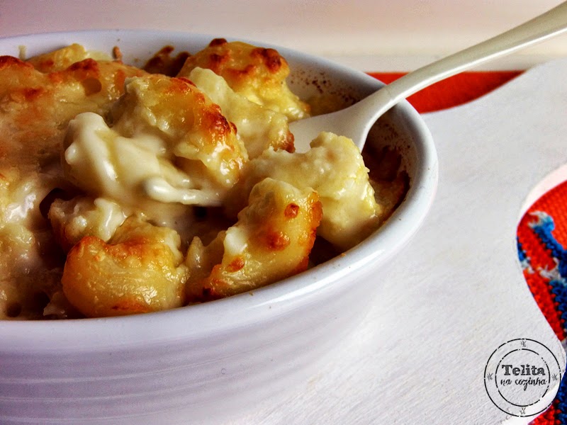 Andava muito curiosidade para provar mac'n'cheese, talvez porque a combinação me soasse bastante a comfort food ou por, simplesmente, achar que a combinação de massa gratinada com queijo seria perfeita. Nunca experimentei nenhuma outra versão se não esta mas fiquei bastante satisfeita com o resultado. É, de facto, comfort food e, com estas quantidades têm uma boa refeição para duas pessoas, talvez acompanhada com uma salada, ou para quatro pessoas, como acompanhamento.