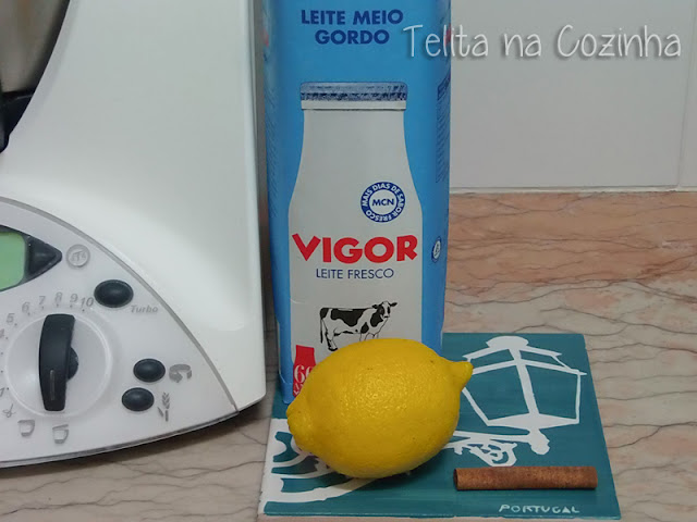 Colocar no copo o leite e no cesto colocar a casca de limão com o pau de canela e programar 8 min/ 90º C/ vel 1. Deixar arrefecer até (a Bimby marcar) 50º C e retirar o cesto.